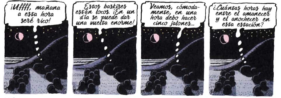 En siete preciosos capítulos, ¿Cuánta tierra necesita un hombre?, de Martin Veyron, nos ofrece una adaptación de uno de los relatos clásicos del literato ruso Lev Tolstoï. Un cómic sobre la ambición, la avaricia y las ansias de poder. Una fábula atemporal mil veces contada que cobra mayor relevancia por la pluma que hay detrás. Una parábola escrita en 1886 que critica la codicia humana y reflexiona sobre los límites del deseo material.