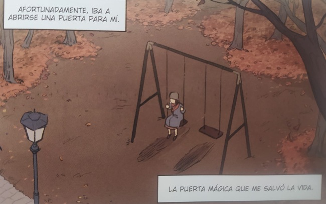 El dibujo de Loreto Aroca acompaña de forma magistral. Logra algo difícil: narrar la guerra sin recurrir al dramatismo ni al exceso visual. En sus viñetas hay bombas, sí, pero también hay silencios, habitaciones pequeñas, platos vacíos, abrazos. Es un relato sobre la guerra contado desde la mirada de una niña. Una mirada diferente, similar a la de Anna Frank, con la que la protagonista guarda cierta relación que se introduce entre las páginas del cómic.